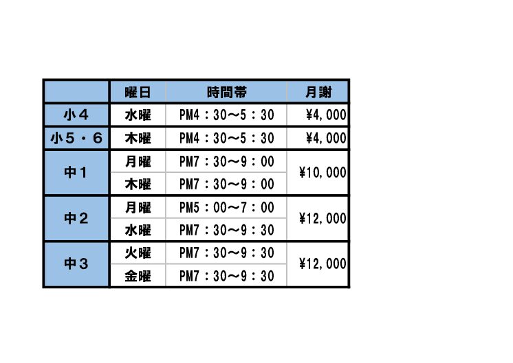 2025年度の通塾曜日・時間・授業料